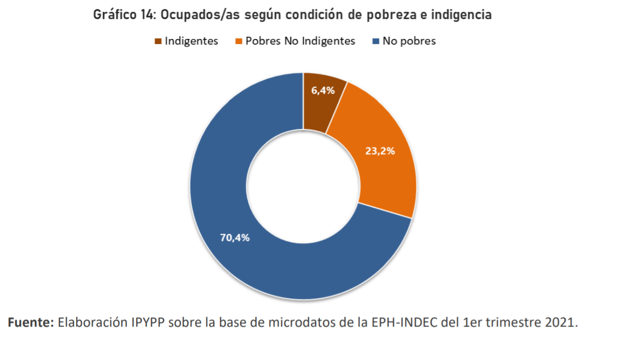 Los crecientes niveles de precarización contribuyen a explicar que buena parte de la clase trabajadora deba vender su fuerza de trabajo por debajo de su valor. Si se toman como referencia los valores de las canastas básicas utilizadas oficialmente para la medición de la pobreza y la indigencia, surge que 3 de cada 10 trabajadores y trabajadoras (29,6%) son pobres y el 6,4% son indigentes.