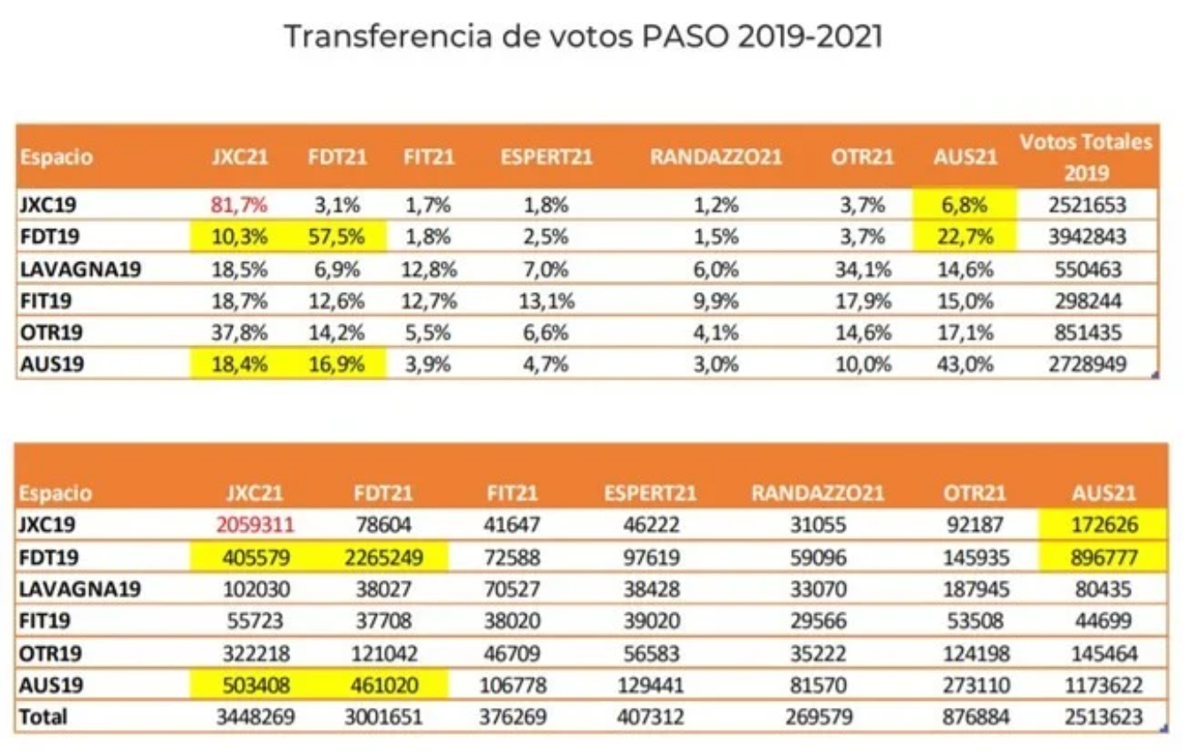 de los votos que había obtenido en las PASO 2019 y “sólo” un 6,8% se ausentó